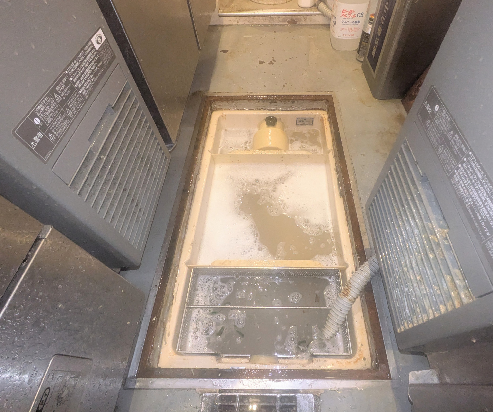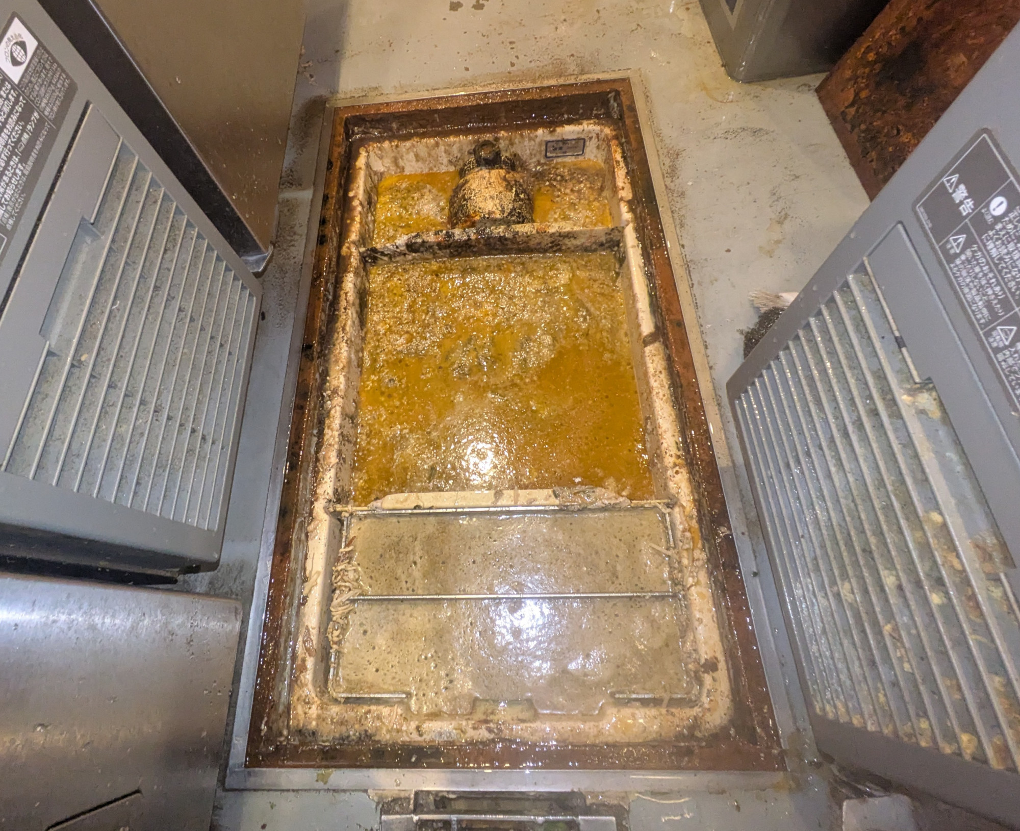 神戸三宮・創作ラーメン店舗、厨房グリストラップ清掃・施工例!
