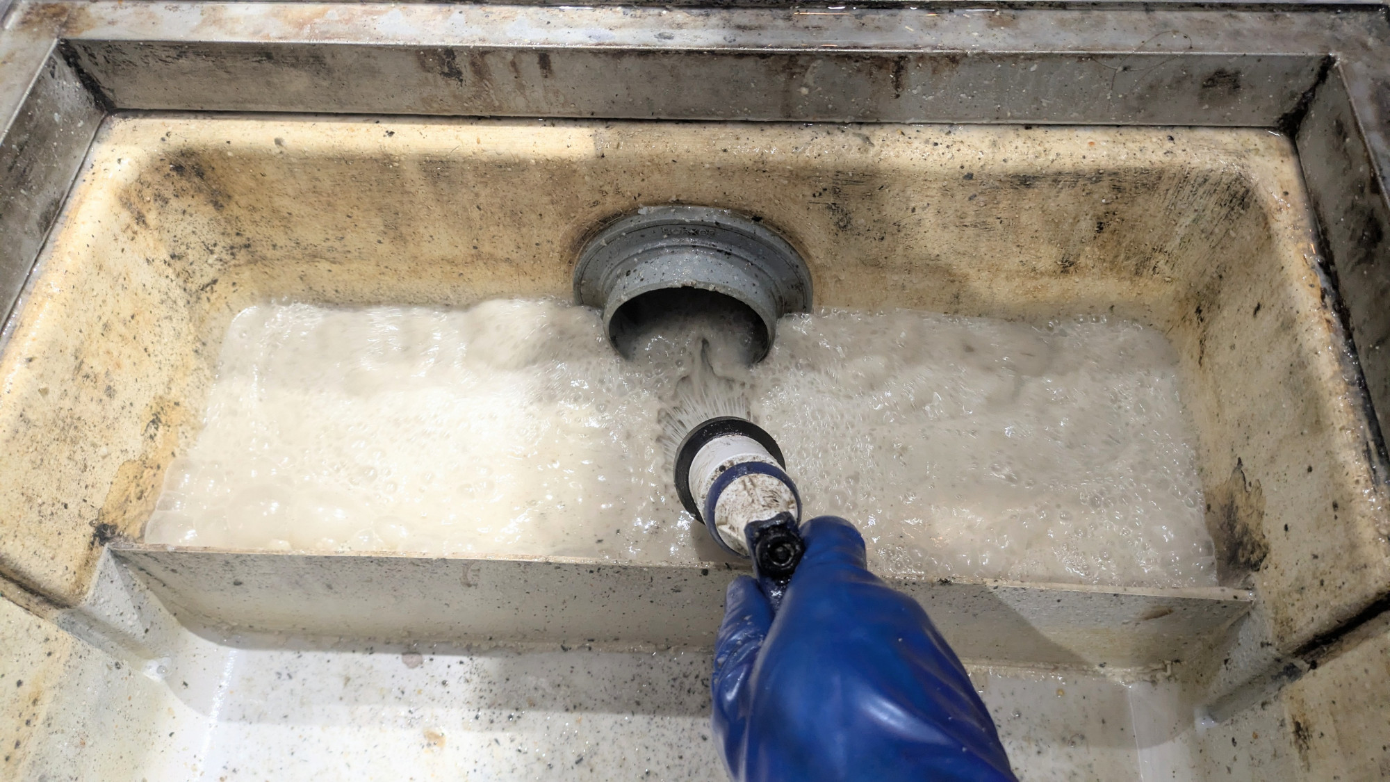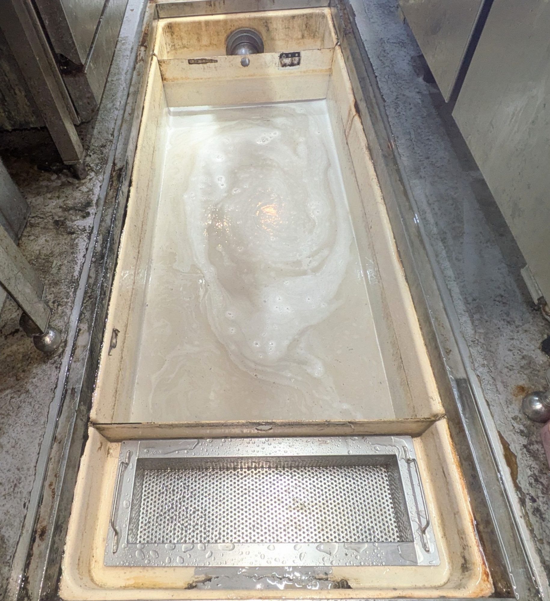 神戸三宮・創作焼鳥店舗、厨房グリストラップ(冬期!)緊急配管詰まり(熱湯!)清掃・施工例!